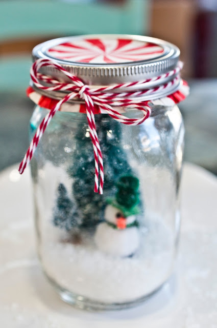 Lastly, I used some red bakers twine to finish the snow globe off.